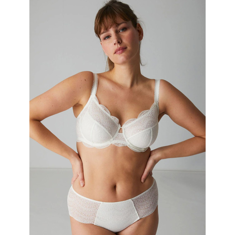 Sujetador de encaje con aros de copa completa. Proporciona una excelente sujeción, con relleno inferior forrado de algodón para mayor sujeción y opacidad, además de tirantes multiposición y ajustables: clásicos o cruzados. Color: Marfil (VER FOTO)
